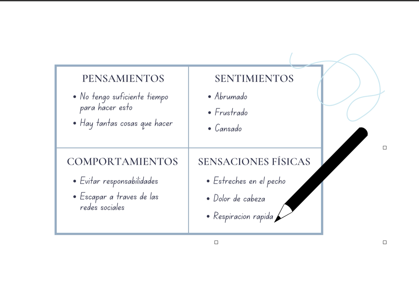 Luego observa si puedes identificar pensamientos, comportamientos o sensaciones físicas.